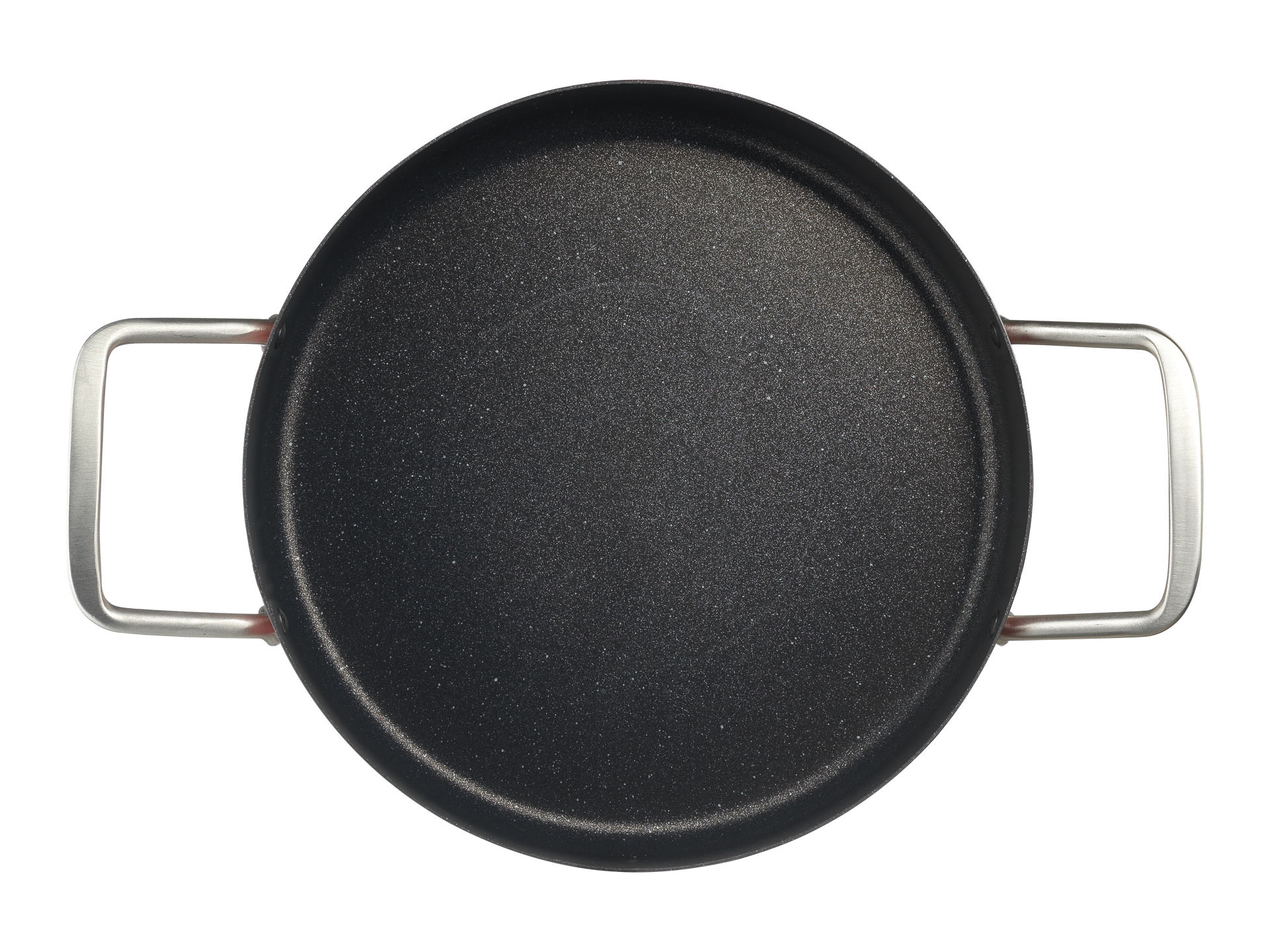 Nu veti simti nici un fel de restrictii in cazul in care veti dori sa experimentati cu noi retete sau cu bucate traditionale. Baza din otel carbon asigura distribuirea uniforma a caldurii, iar invelisul antiaderent din trei straturi si dotat cu particule de titaniu fac aceasta cratita sigura si durabila.