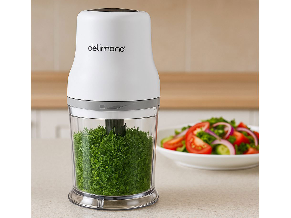 Maruntitorul Delimano Primera are putere de 200 W si bol de 600 ml. Taie rapid legume, fructe sau verdeata. Cu un singur buton si design compact, este usor de folosit si curatat — perfect pentru orice bucatarie.