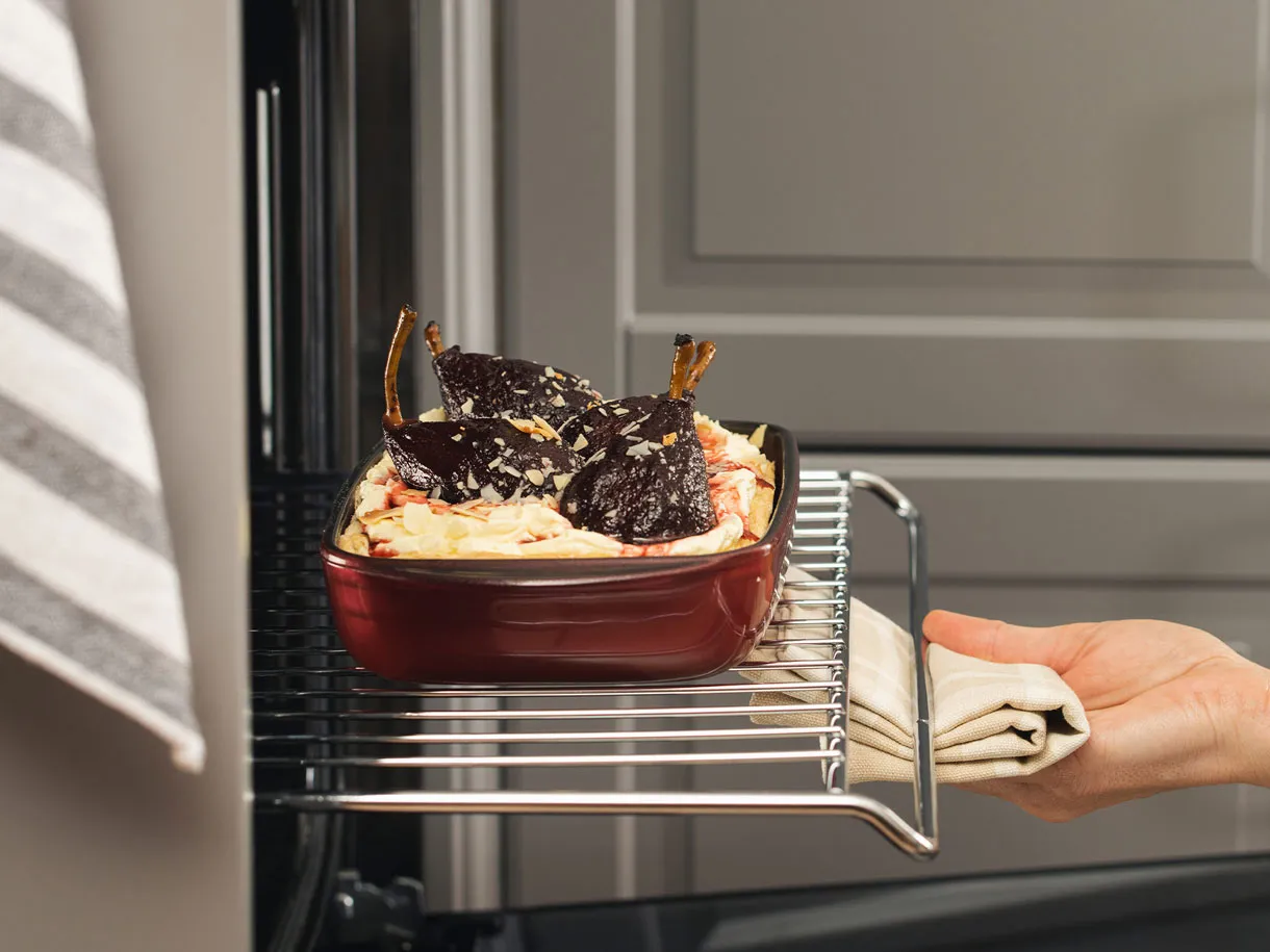 - Utilizabilă în cuptor până la 230°C (numai tava);