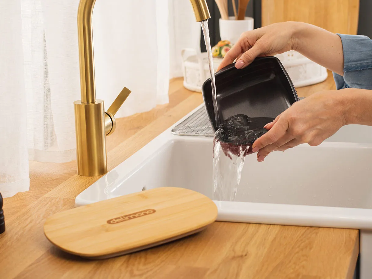 Tava Delimano Royal Supreme Glass rezistă atât la temperaturi scăzute, cât și la cele ridicate. Poate fi mutată direct din frigider în cuptor sau cuptor cu microunde, fiind ideală pentru reîncălzire sau depozitarea preparatelor. Se curăță ușor în mașina de spălat vase, iar capacul din bambus trebuie șters cu o lavetă umedă și lăsat să se usuce natural.